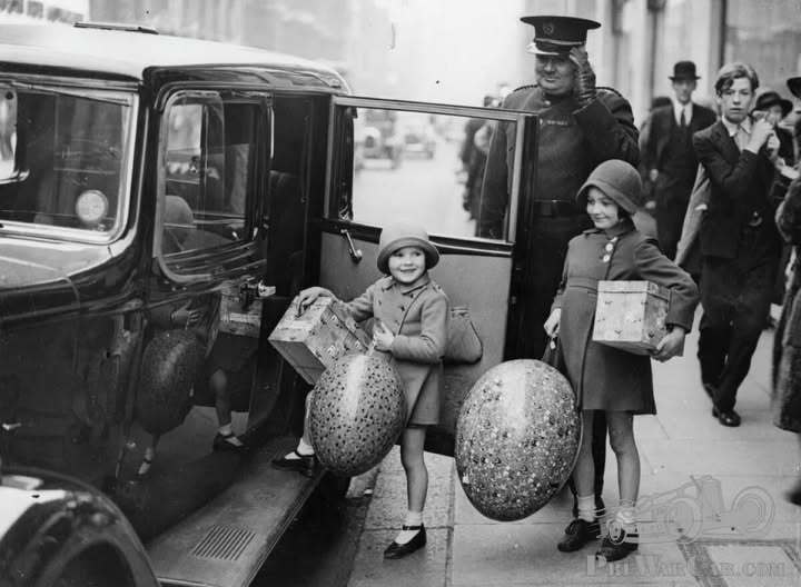 London 1936 – These enormous Easter eggs probably came from Thorntons or Prestat on Oxford Street. These confectioners were known for making a giant egg that was displayed in their shop window until Easter and then donated to a local children’s hospital. Happy Easter!