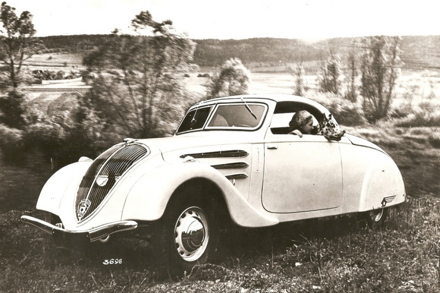 Together with coachbuilder Marcel Pourtout (pictured next to his work) and Parisian Peugeot dealer Emile Darl’Mat (1892–1970), the first Peugeot Eclipse was built on a Peugeot 301 chassis and presented to the public at the 1933 Salon de l’Automobile.