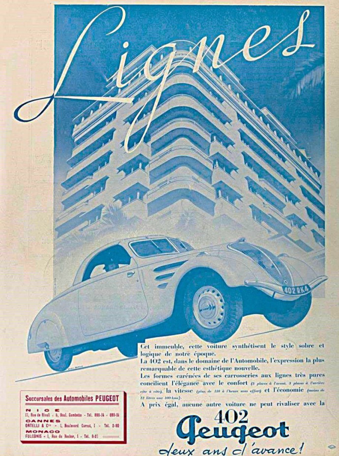 Peugeot 402 Eclipse E5T, from 1938 with spare wheel on the outside of the boot and large engine (2.2 litre engine with 63 hp instead of 2.0 litres).
